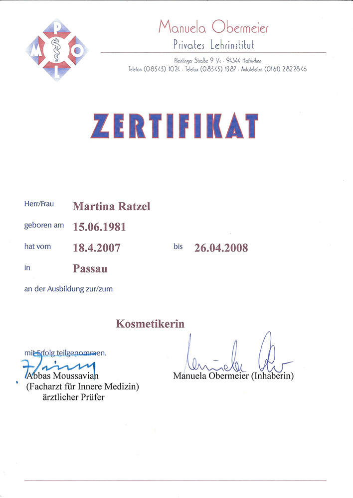 machen den Unterschied. Martina Ratzel bietet ihren Patientinnen und Patienten natürliche Gesundheitstherapien auf höchstem Niveau, verbunden mit ganzheitlichen Behandlungskonzepten auf zertifizierter Basis – seit über 25 Jahren immer ausgerichtet am neuesten Stand der Heilkunde.